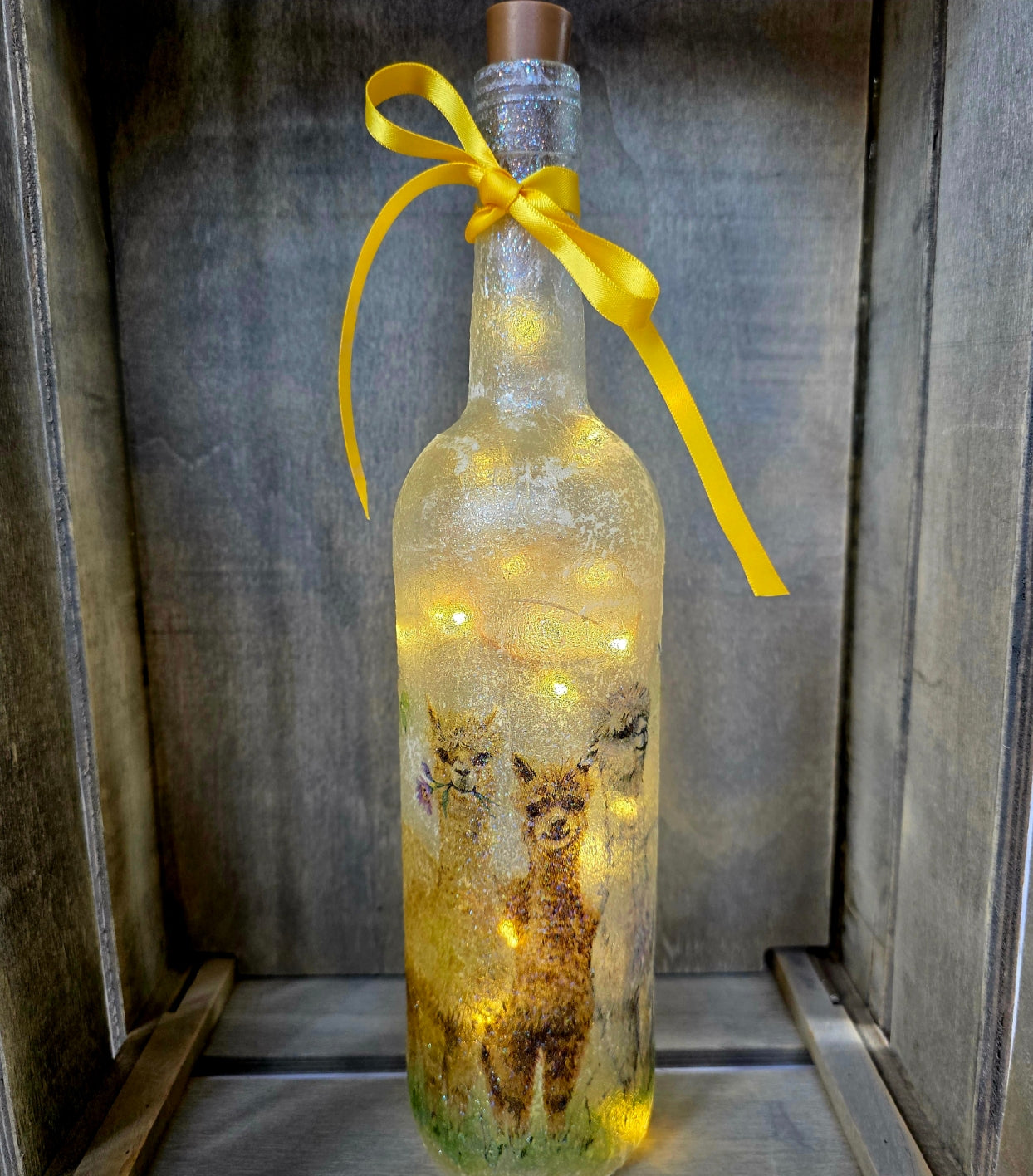 Illuminate your space with a delightful blend of charm and functionality — meet the Alpaca Bottle Lamp, your new must-have companion! If you want an unusual gift but one that is useful, look no further. This upcycled creation is not only adorable but also eco-friendly, bringing sustainability into your home with style.