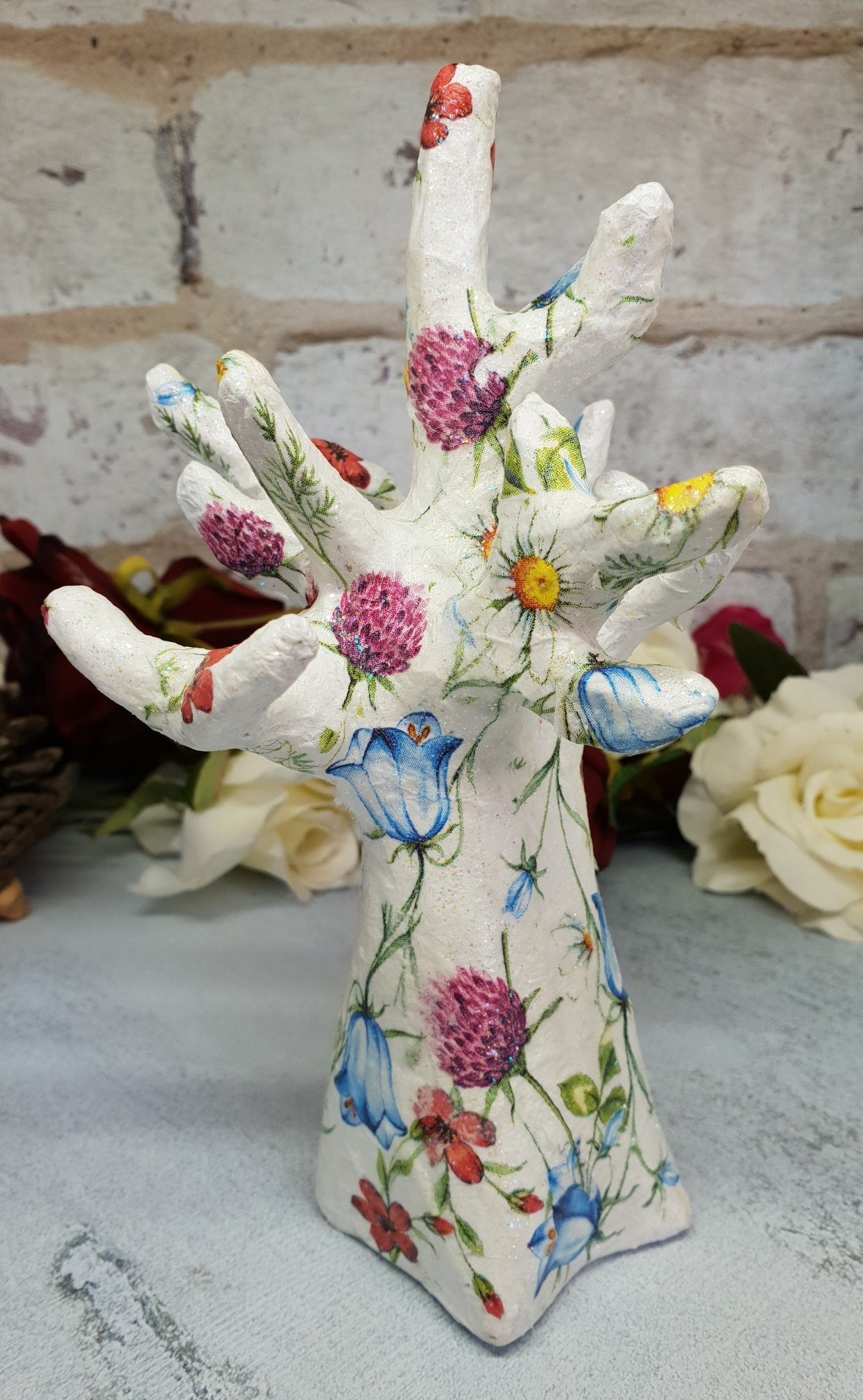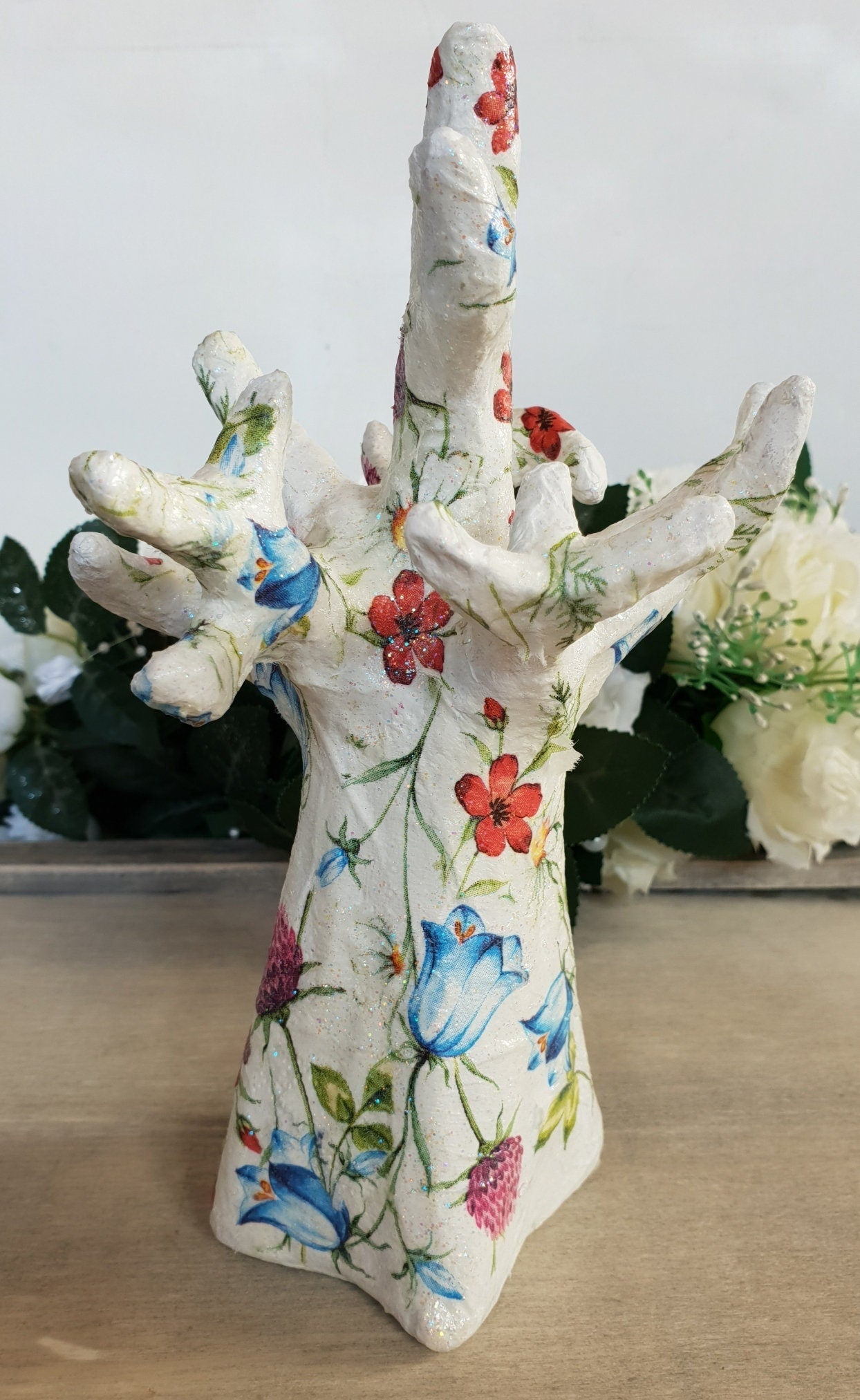 If you have a lot of rings, this is the place to keep them. This Decoupage Tree is great for a desk, nightstand or dresser. Comes in handy when you need a ring and don't know where it is. You can easily see which one you'd like to wear with out going through a bunch of jewelry boxes. It's pretty sparkly too!