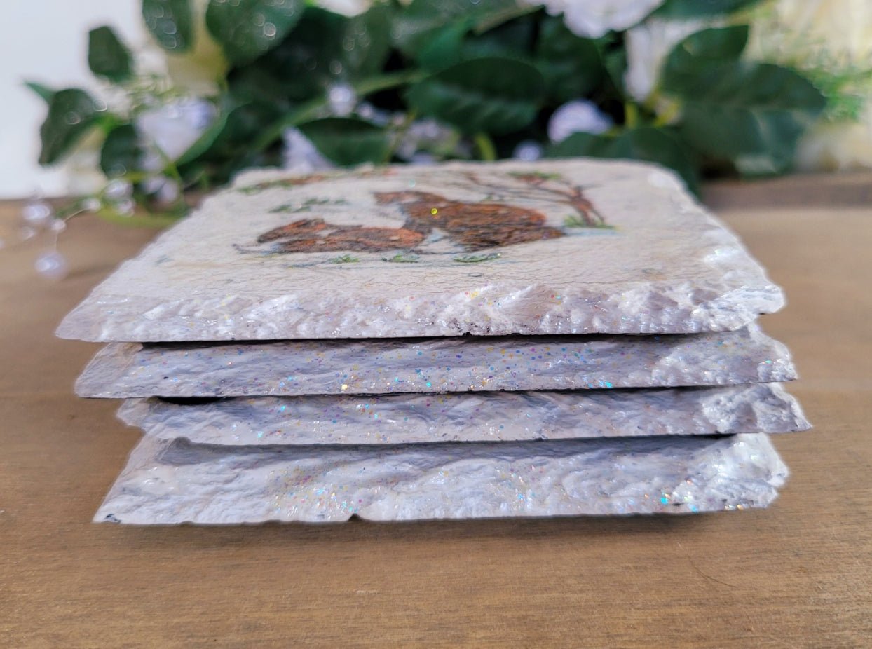 Like my round slate Christmas coasters, this set of four square slate coasters are also a great addition to your Christmas 🎄 table. With four beautiful wildlife images, they are a wonderful gift for the nature lover in your life, or a treat for yourself when it's time to enjoy some Christmas cheer.