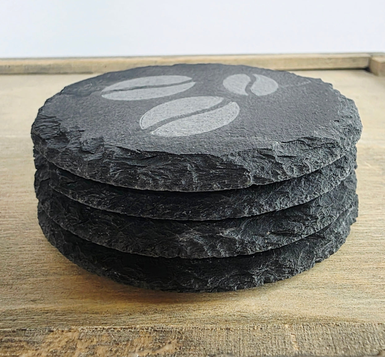 Elevate your coffee moments with this premium set of four engraved slate coasters.