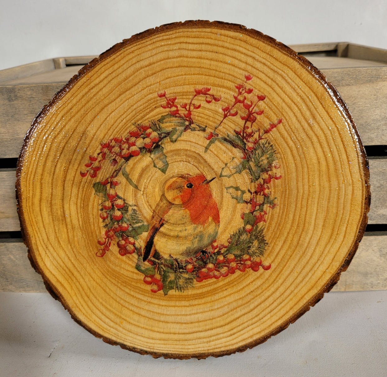 Crafted on pine wood slices using paper napkins and varnished to a high-quality finish with two different varnishes, these table mats not only look stunning but are also incredibly durable for long-lasting use. Each mat measures approximately 22cm across and 1 inch thick, providing ample space for your plates, glasses, and cutlery.